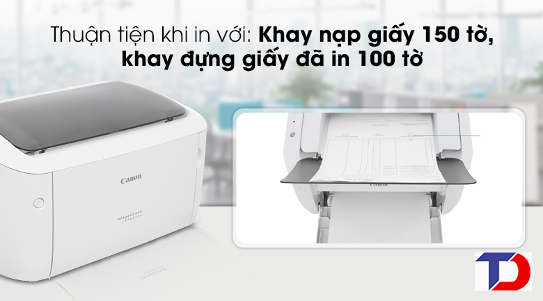 Ngoài ra Máy in Canon LBP 6030w có khay nạp giấy 150 và 100 tờ trên khay chờ giúp cho bạn tiện lợi trong quá trình sử dụng liên tục, Máy in Canon LBP 6030w với thiết kế hiện đại dễ lau chùi và vệ sinh.