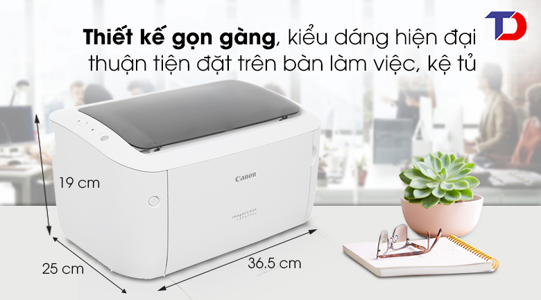 Máy in Canon LBP 6030w được thiết kế nhỏ gọn với kích thước (Dài 364 mm - Rộng 249 mm - Cao 199 mm - Nặng 5.0 Kg) phù hợp với văn phòng, hoặc sử dụng tại gia đình phục vụ cho công việc in ấn, Máy in Canon LBP 6030w có độ phân giải cao lên đến 2400 x 600 dpi cho bạn những bản in hoàn hảo và rút ngắn thời gian chờ đợi, và thao tác in liên tục không bị kẹt giấy.