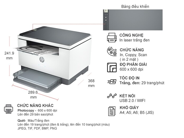 ►HP LaserJet MFP M236DW là một máy in đa năng laser trắng đen với kết nối không dây (Wi-Fi), hỗ trợ in đảo mặt và nhiều chức năng văn phòng khác. Đây là lựa chọn lý tưởng cho các văn phòng nhỏ hoặc gia đình có nhu cầu in ấn, sao chép, quét và gửi fax.