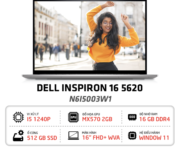 ►Laptop Dell Inspiron 5620 N6I5003W1 là một sản phẩm tuyệt vời kết hợp giữa hiệu suất mạnh mẽ và thiết kế hiện đại, đáp ứng đầy đủ các nhu cầu từ công việc đến giải trí