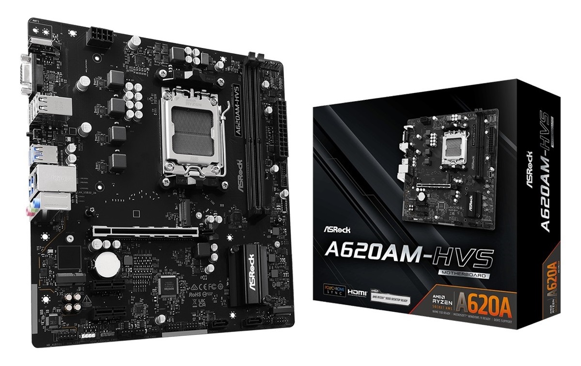 ASRock A620M-HVS được phát triển để tương thích với các bộ vi xử lý AMD Ryzen sử dụng socket AM5. Nền tảng này mang lại hiệu năng tốt và khả năng xử lý mạnh mẽ cho các tác vụ từ cơ bản đến nâng cao.