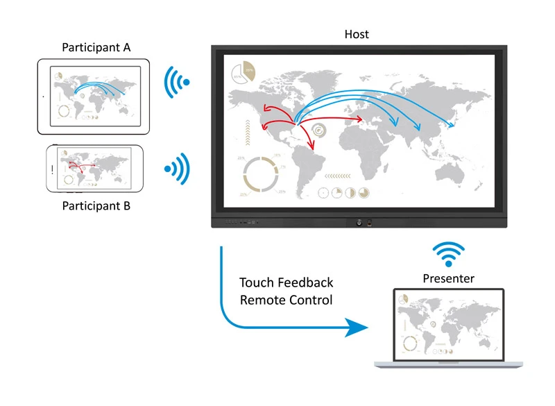 ViewBoard® cho phép nhiều người dùng chú thích tương tác trên màn hình trong cùng thời điểm, tăng mức độ tham gia và khuyến khích hợp tác nhóm.
