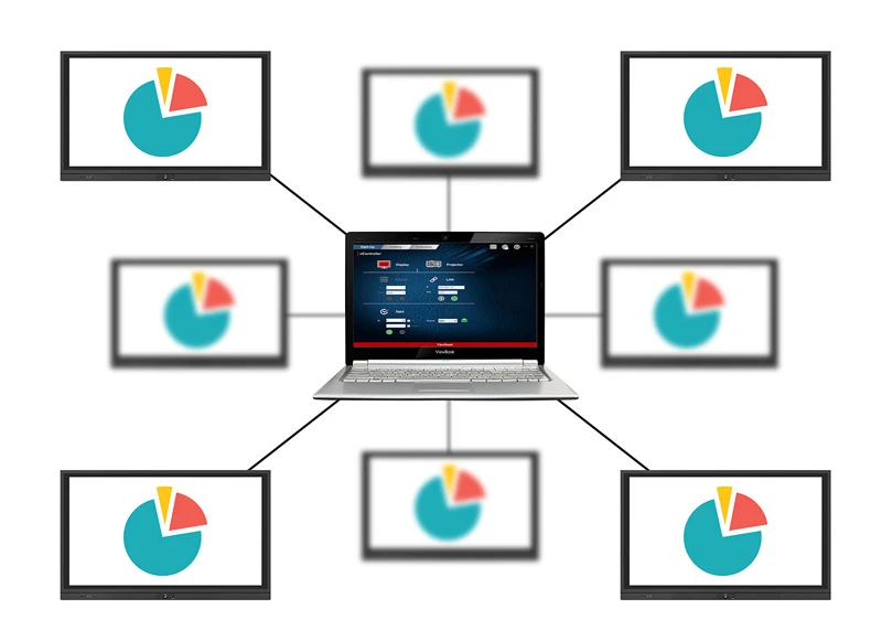 Với cổng điều khiển LAN/RS232, hệ thống điều khiển mạng của ViewSonic cho phép quản trị viên kiểm soát và quản lý nội dung được hiển thị và các thiết lập mặc định từ ViewBoard® có kết nối từ xa từ PC thông qua IP mạng LAN.