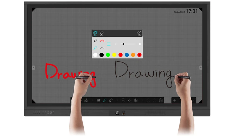 Phần mềm bảng tương tác myViewBoard™ hỗ trợ viết 2 bút cùng lúc với các màu sắc và độ dày khác nhau cho các buổi thảo luận nhóm.