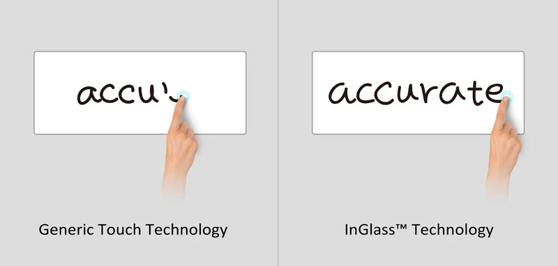 Tận hưởng trải nghiệm màn hình cảm ứng chính xác hơn trên ViewBoard® IFP7560/6560 thông qua công nghệ InGlass™. Dù sử dụng ngón tay hay bút cảm ứng stylus, người dùng đơn hoặc nhiều người dùng đều có thể tận hưởng trải nghiệm viết và vẽ không lo giật lag nhờ công nghệ InGlass™.