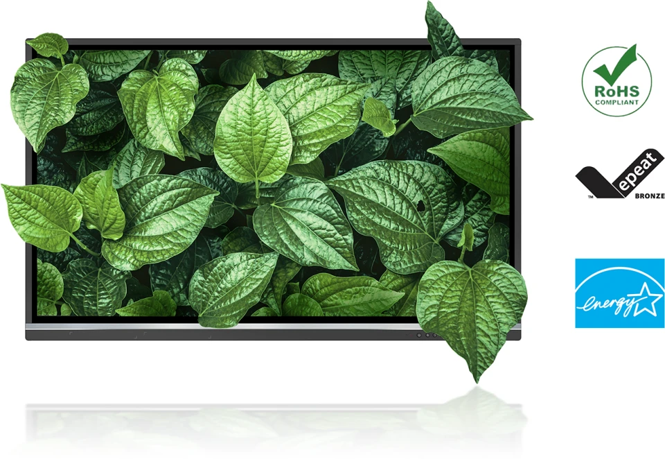 Cam kết phát triển bền vững, ViewSonic đang tích cực làm việc để triển khai các khái niệm nâng cao về hiệu quả năng lượng và thân thiện với môi trường trên các dòng sản phẩm. Dòng ViewBoard® 50-5 đáp ứng các tiêu chuẩn tiêu thụ năng lượng, chú ý đến lượng khí thải carbon của chuỗi cung ứng và quản lý. Dòng sản phẩm cũng được chứng nhận EPEAT Bronze, khiến nó trở thành một sản phẩm thân thiện với môi trường.