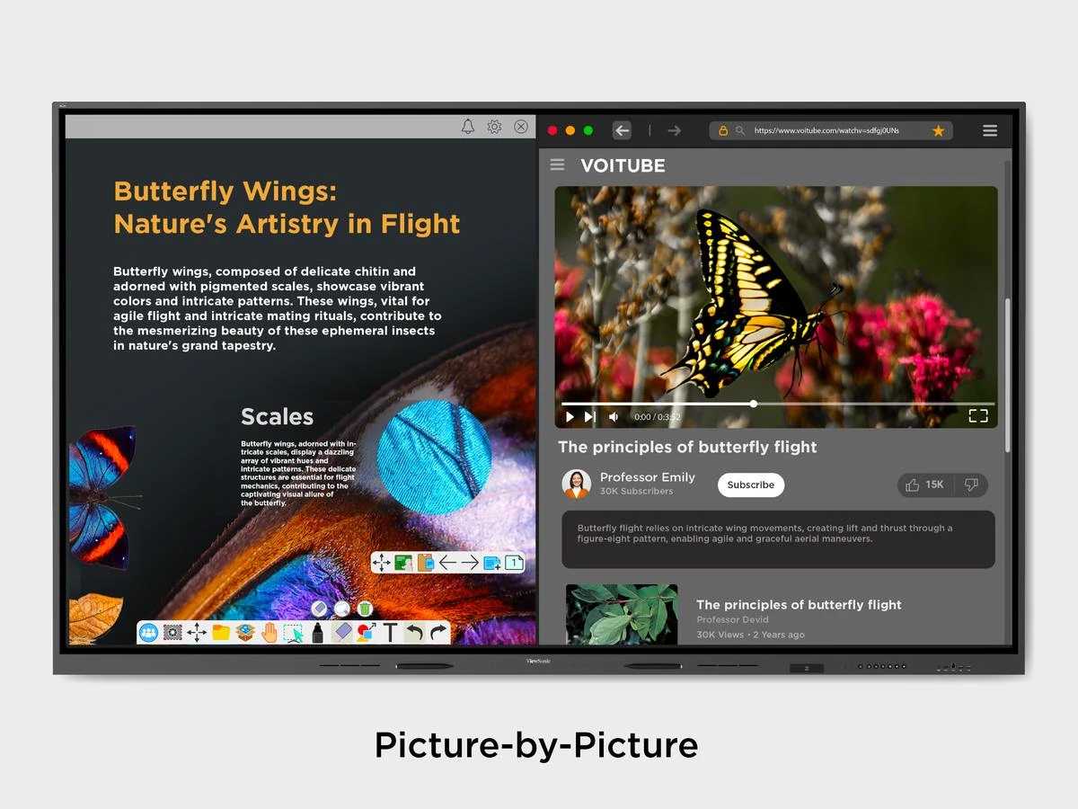 Làm chủ quy trình làm việc của bạn với các khả năng đa nhiệm linh hoạt. Trình bày một cách liền mạch các ứng dụng hoặc nội dung từ thiết bị bên ngoài bằng cách sử dụng chế độ chia màn hình hoặc cửa sổ floating, mang lại những khả năng mới cho các quy trình làm việc và bài thuyết trình thực sự động.