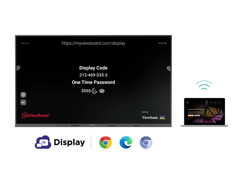 Dễ dàng trình chiếu màn hình thiết bị của bạn lên ViewBoard bằng Display. Dịch vụ tích hợp này cho phép chia sẻ ngay lập tức từ các trình duyệt web tương thích để có trải nghiệm thuyết trình mượt mà và đơn giản - không cần dây cáp hay ứng dụng bổ sung.