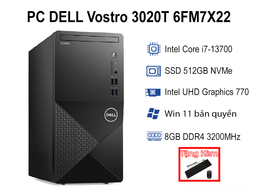 ⇒Hãy liên hệ để được tư vấn và mua ngay Máy Tính Để Bàn PC DELL Vostro 3020T 6FM7X22 i7-13700| 8GB| 512GB| OB| Wifi,BT| Win11 với giá ưu đãi tại TÂM ĐỨC TECH