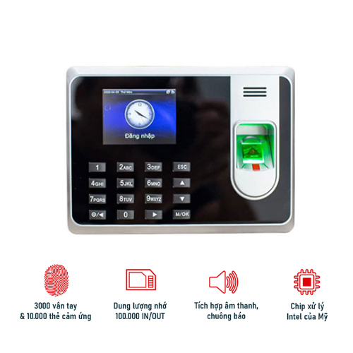 Máy có thể lưu trữ tới 3.000 dấu vân tay và 100.000 lượt chấm công, phù hợp cho các doanh nghiệp có số lượng nhân viên vừa và lớn.