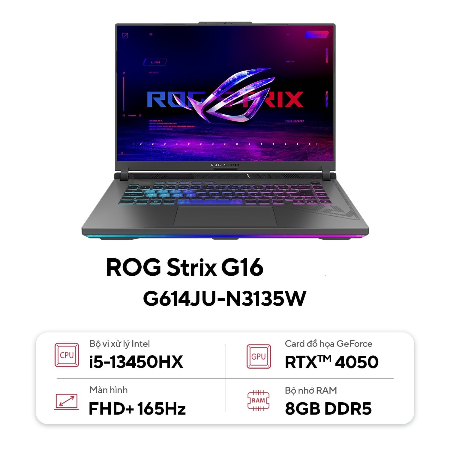 ⇒Hãy liên hệ để được tư vấn và mua ngay Laptop Asus Rog Strix G16 G614JU-N3135W i5-13450HX| 8GB| 512GB| RTX4050 6GB| 16"WUXGA| Win11 với giá ưu đãi tại TÂM ĐỨC TECH
