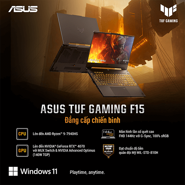 ⇒Hãy liên hệ để được tư vấn và mua ngay Laptop ASUS TUF Gaming A15 FA507XI-LP420W R9-7940HS| 8GB| 512GB| RTX4070 8GB| 15.6"FHD 144Hz| Win11 (Đen) với giá ưu đãi tại TÂM ĐỨC TECH
