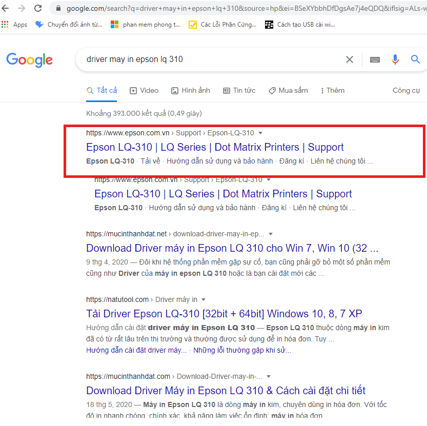 Ở đây mình sủa dụng máy in Epson LQ310 để cài đặt