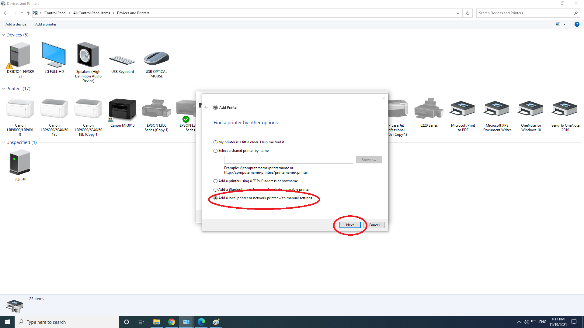 Tương tự trên Win 7 củng vậy và với những dòng máy in khác củng tương tự quan trọng bạn chỉ cần tải đúng driver