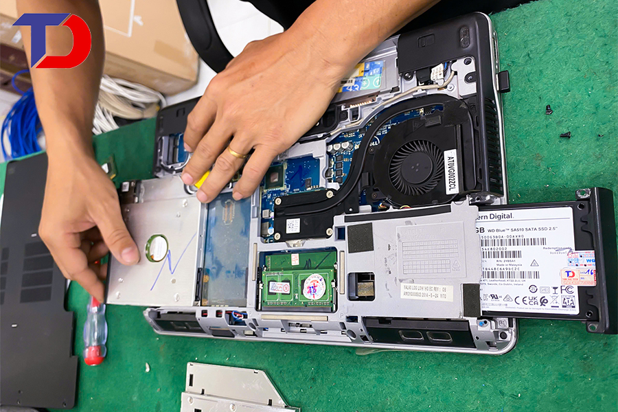 Kỹ thuật viên Tâm Đức Tech nâng cấp ram, ổ cứng ssd sau khi khách hàng đã đồng ý