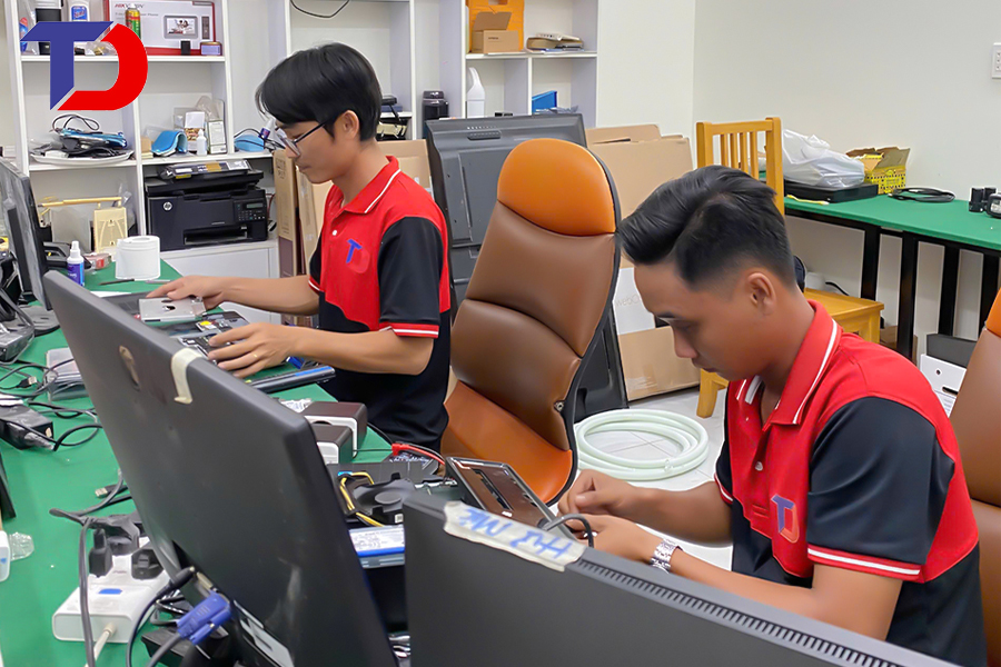 Các kỹ thuật viên Tâm Đức Tech tiến hành khắc phục lỗi mà máy tính gặp phải