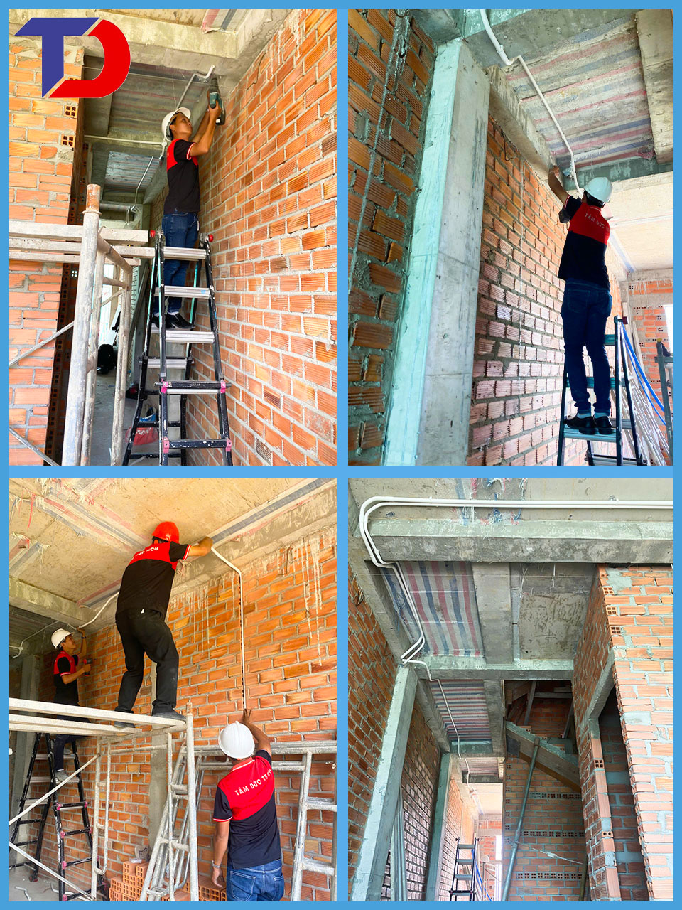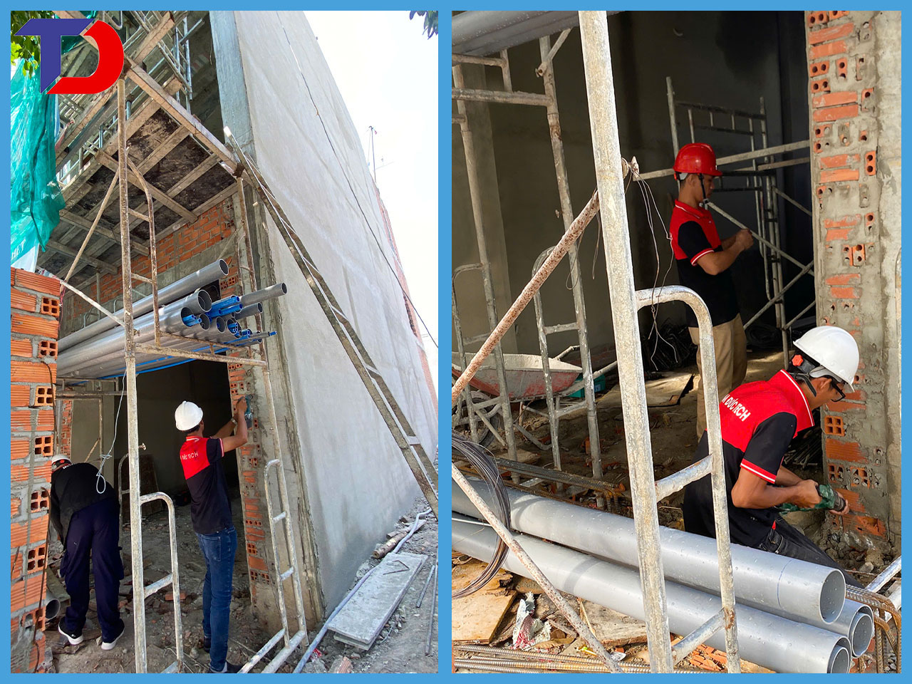 Cắt đục đi ống chờ dây mạng, camera, ống ga máy lạnh