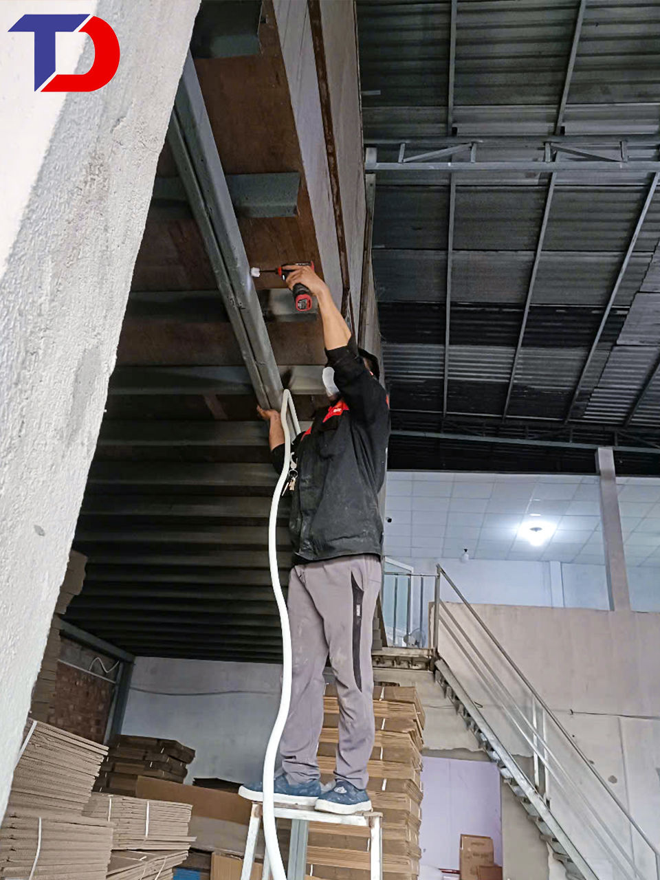 Kỹ thuật viên Tâm Đức Tech đang thi công kéo dây cáp tín hiệu camera