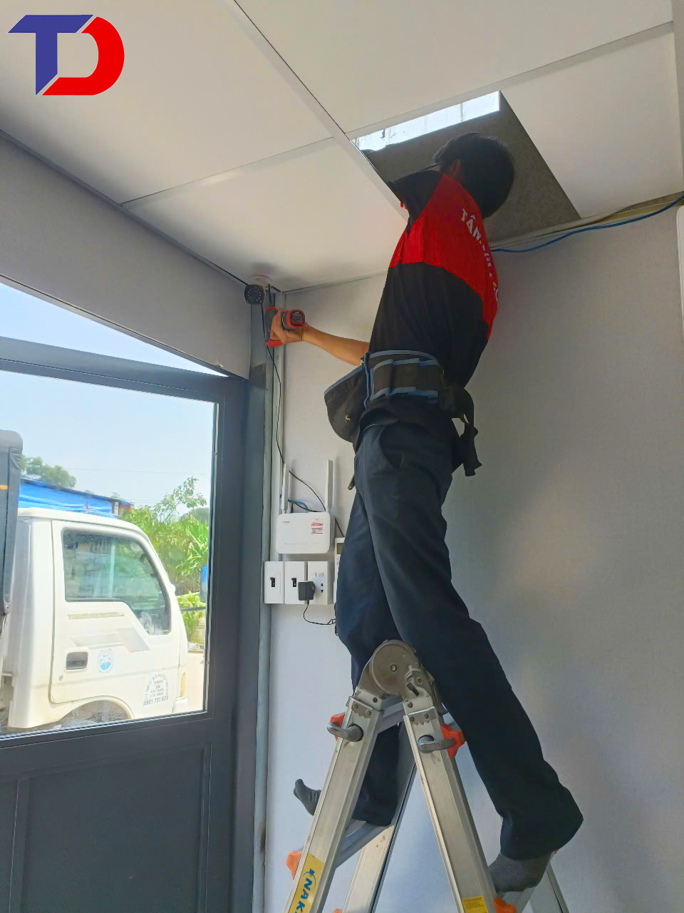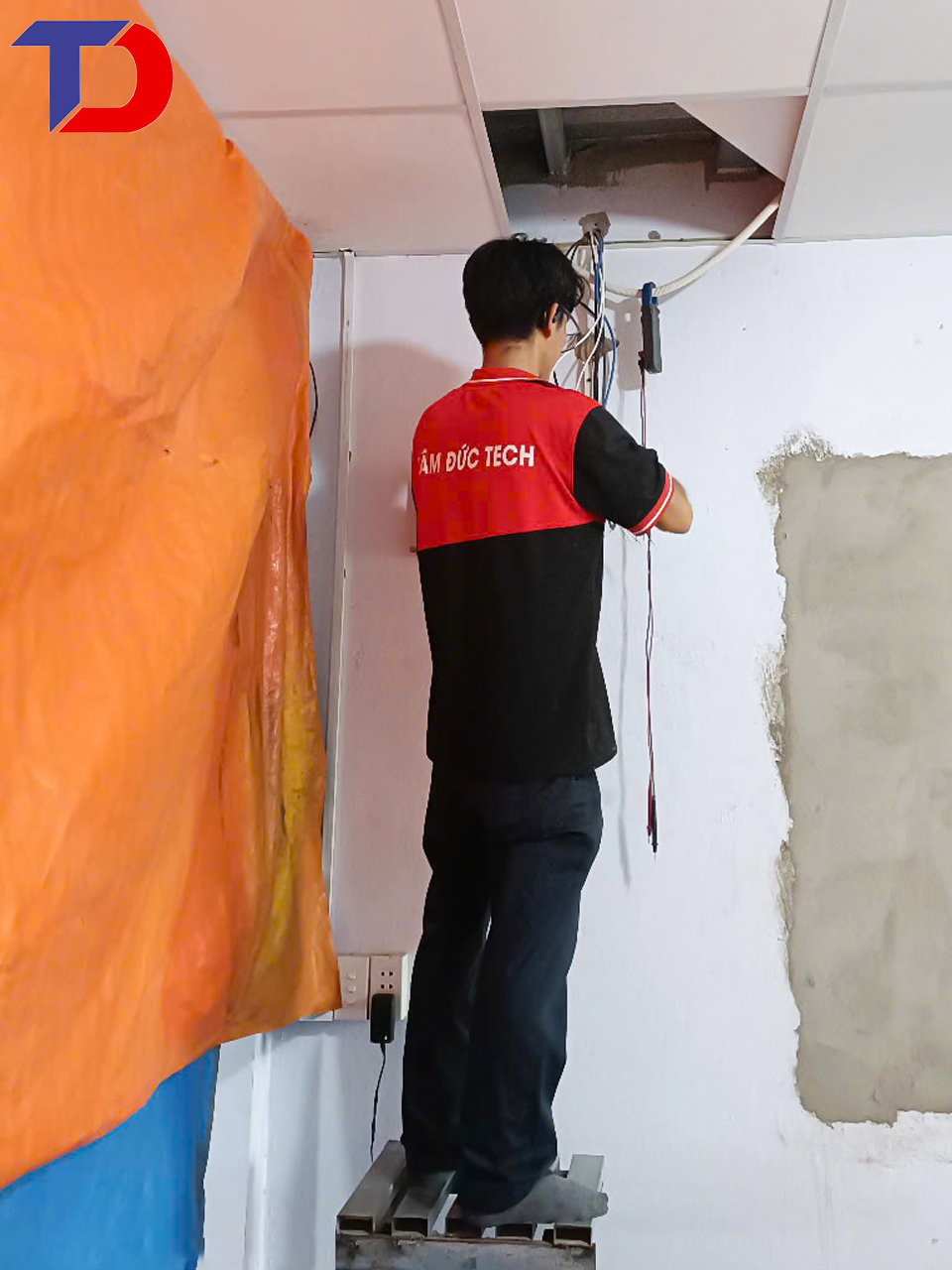 Kỹ thuật viên Tâm Đức Tech đang lắp đặt kết nối camera