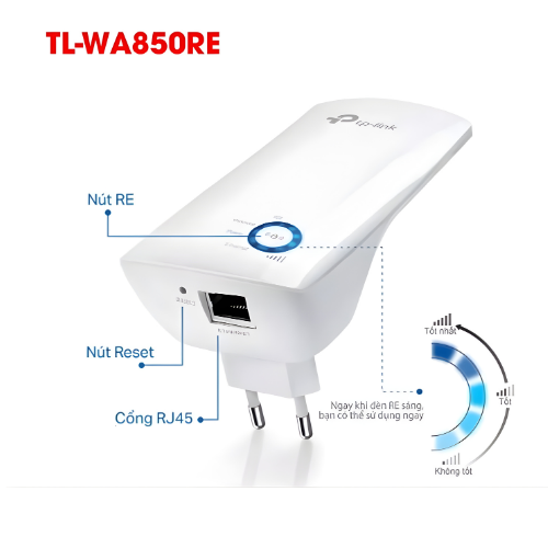 TL-WA850RE hoạt động bằng cách nhận tín hiệu từ router chính và phát lại tín hiệu WiFi, giúp mở rộng vùng phủ sóng đến các khu vực trước đây không có mạng hoặc tín hiệu yếu.