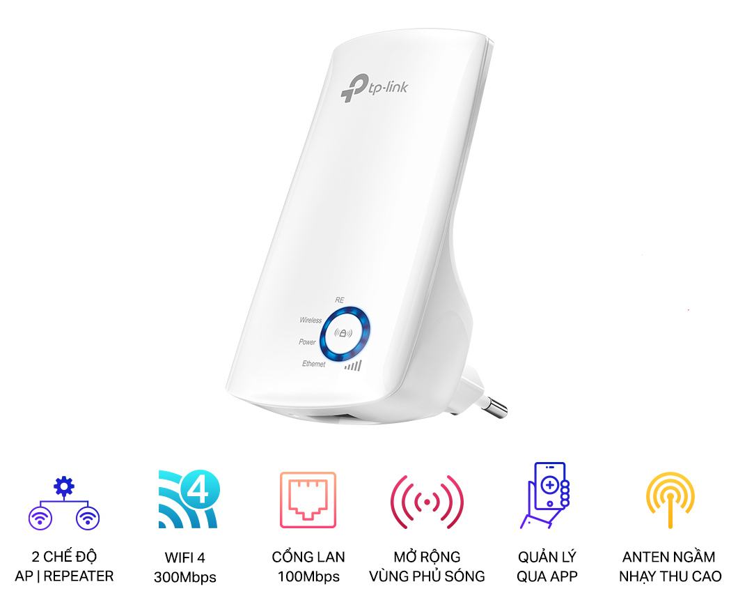 TL-WA854RE giúp kéo dài phạm vi phủ sóng của mạng WiFi hiện có, cung cấp kết nối ổn định ở các khu vực không được phủ sóng đầy đủ.